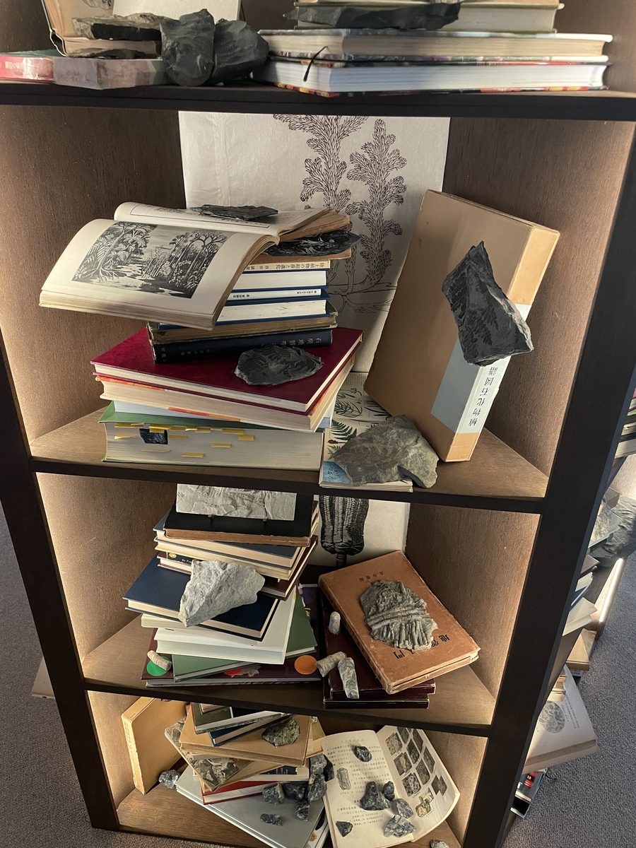 資生堂ギャラリーは地下にあるという特性を活かし、地層の棚が作られていました。人間の探究心も本の地層となって積まれていくようなイメージが浮かんできました。